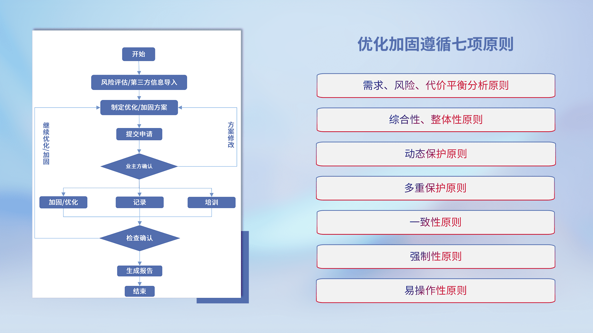 最大程度利用现有资产,,对评估发现的问题进行封堵与整改,,防止漏洞被利用,,,提升整体网络安全性,,,,为客户带来高标准的优化加固服务。。